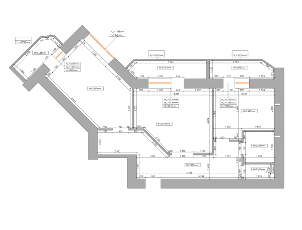 Общее освещение: представлено встроенными точечными светильниками и накладными светильниками, и трековой системой.